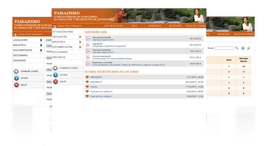 El Campus Virtual cuenta con diferentes menús y secciones, diseñados para que puedan servirle de ayuda y apoyo tanto durante la realización del Curso como en su posterior carrera profesional.