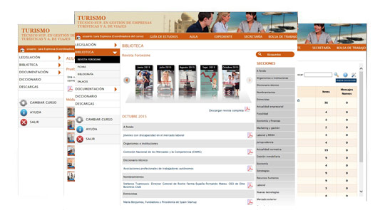 El Campus Virtual cuenta con diferentes menús y secciones, diseñados para que puedan servirle de ayuda y apoyo tanto durante la realización del Curso como en su posterior carrera profesional.